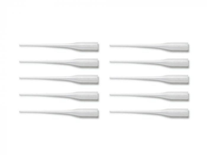 瞬間接着剤のノズル先端に差し込んで、狭い場所に接着剤をつけるときに活躍する先細ノズルです。先端が詰まったら、カッターナイフなどでカットして使います。ITEM87062 タミヤ瞬間接着剤(速硬化タイプ)、ITEM54511 ゴムタイヤ用瞬間接着剤(低粘度タイプ25g)のノズルに差し込んで使います。 【基本スペック 】 差し込む部分のパイプ内径2.5mm、10本入り
