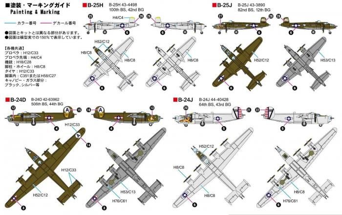 ・B-24D×4種、B-24J×4種、B-25H×4種、B-25J×4種のマーキング入り