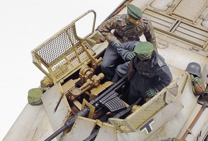 【 シャープな細部表現で秀作キットを刷新 】 第二次大戦後半、2cm砲、5cm砲、短砲身7.5cm砲、長砲身7.5cm砲搭載の4タイプが生産された8輪重装甲車Sd.Kfz.234シリーズの中で、最初に計画されたのが2cm砲搭載のSd.Kfz.234/1です。平面構成の車体に210馬力の空冷ディーゼルエンジンを搭載し、80km/hの最大速度と約1,000kmの航続距離を実現。8輪駆動の足まわりによる高い走破性や、迅速に後退するための後部操縦席を備えていました。また2cm機関砲と7.92mm機関銃を同軸装備したオープントップ式砲塔は、最大仰角70度で対空射撃も行えました。1944年3月から1年間で約230輌が生産され、東西両戦線で戦車師団の偵察部隊に配備。必要十分な武装と優れた機動性能、広い行動半径を活かして終戦の日まで偵察任務に従事しました。