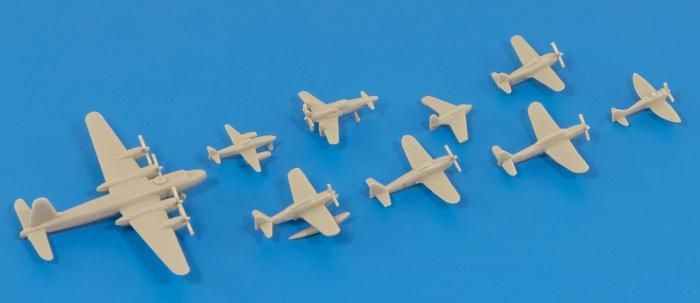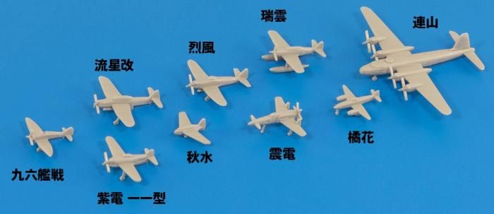 震電、流星改、烈風、連山等の日本海軍の戦闘機、爆撃機、水上機等の多様な機種のセットです。