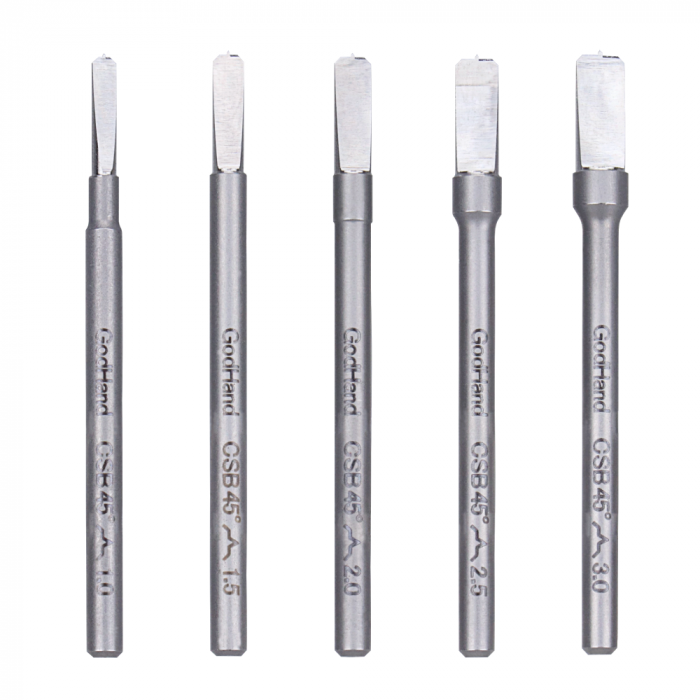 軸の太さが3mmに統一されているため、刃の交換時にピンバイスのコレットチャックの交換が不要です