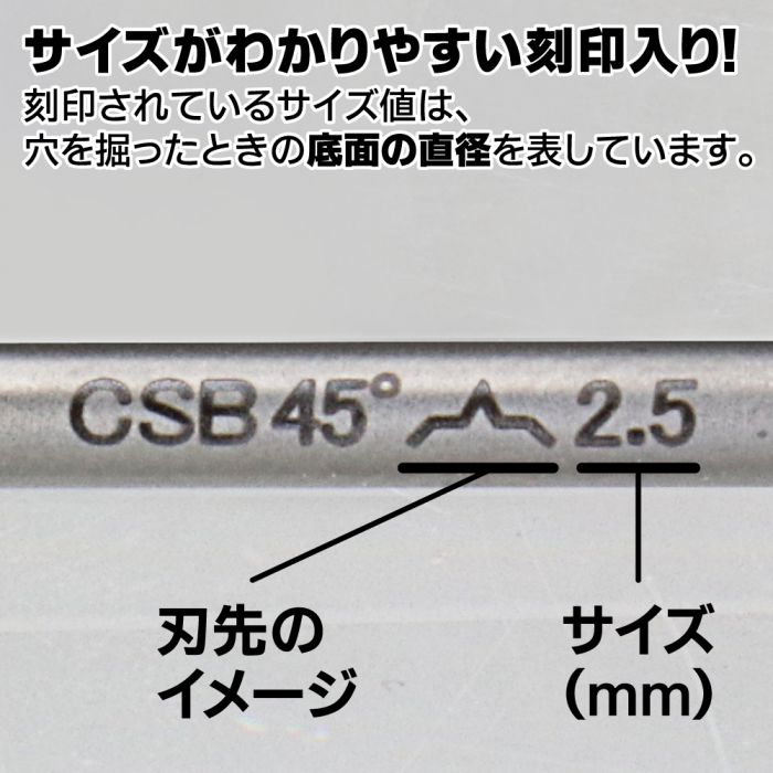 45°の面取り丸モールドを掘ることができるフラットドリルビット