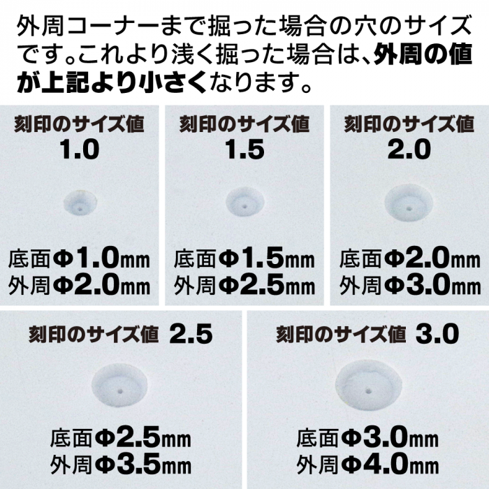 1.0、1.5、2.0、2.5、3.0mmの5本セット