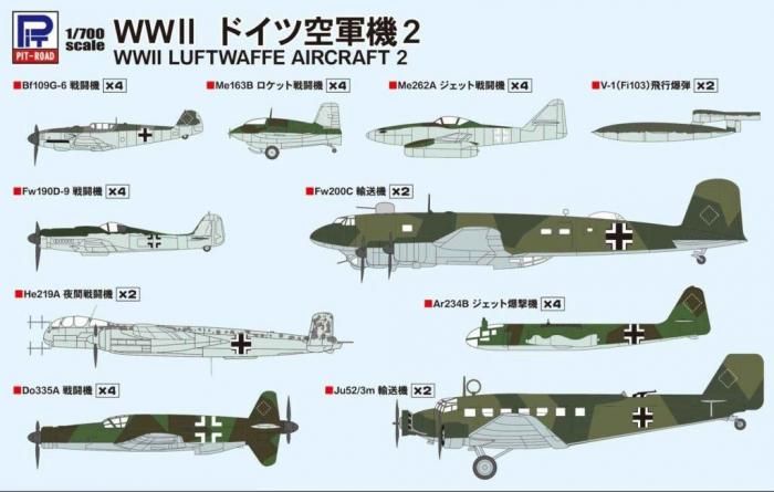 ・He219A 夜間戦闘機、Fw200C 輸送機、Ju52/3m 輸送機、V-1(Fi103)飛行爆弾 各2機入り