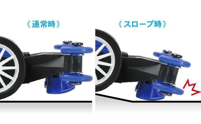 【 駆動効率を追求したMAシャーシ 】MA とは、Midship AERO(ミドシップエアロ)の略。モーターを車体中央に搭載した、ミドシップレイアウトの「MSシャーシ」、走行中の気流(エアロ)を特に意識してデザインされた「ARシャーシ」。それぞれの優れた特徴を1台のシャーシにまとめあげたのがこの「MAシャーシ」です。もちろん、これまでに蓄積されたレーシングノウハウをいかして、3.5:1のギヤ比を採用、6個の低摩擦ローラーやリヤスキッドバーを標準装備するなど、走行性能も徹底的に磨き上げました。加えて、一体型のモノコック構造の採用で、組み立てやすさやメンテナンス性もさらに向上するなど、初心者からベテランレーサーまで、また、小さめのコースで行われる街かどレースから、大型の特設5レーンサーキットの公認競技会まで、幅広く対応できるシャーシです。