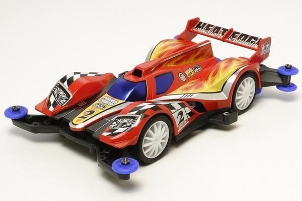 【 闘志が燃える、情熱の空力マシン 】ダブルシャフトモーター搭載の一体型MAシャーシ第二弾、ヒートエッジがミニ四駆PROシリーズに登場です。プロトタイプレーシングカーをモチーフにしたボディは、フロントフェンダー先端両サイドのカナードと、コクピットからリヤにかけての大きなシャークフィンが特徴。実車ムードを高めるローハイトタイヤ&フィンタイプのホワイトホイールが足元を引き締めています。また、ボディに映えるレッドをベースに炎とチェッカーのグラフィックをプラスしたカラーリングは専用のメタリック調ステッカーで手軽に再現できます。