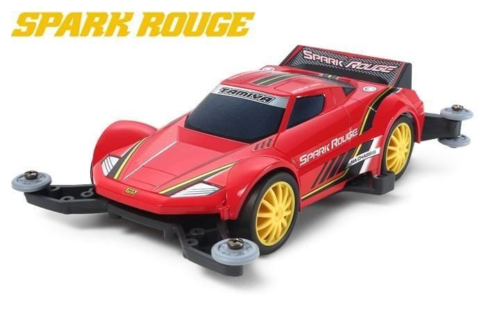 【 ミドシップスポーツカーをイメージした低くシャープなスタイルが注目 】 シャフトドライブ四輪駆動を採用した高性能レーサーのプラスチックモデル組み立てキットです。スパークルージュは、2シーター・ミドシップスポーツカーをイメージさせる、ウェッジシェイプボディが魅力的。ノーズを低く抑え、フロントフェンダーがグッと盛り上がったフォルムは力強さも十分。ボディ後部にはリヤスポイラーも装備しました。サーキットによく映えるレッドカラーのボディを引き締める、メタリック調のマーキング用ステッカーを用意しました。シャーシは駆動効率に優れ、組み立てやすくメンテナンスもしやすい一体構造のMAを採用しました。
