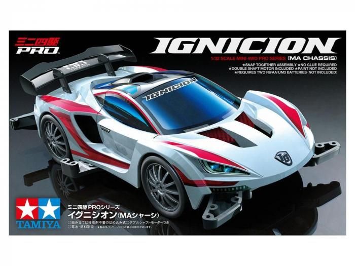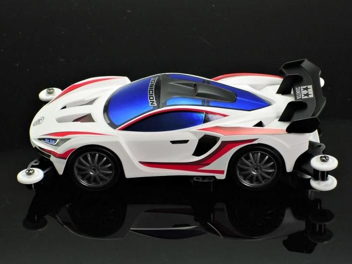 【 ハートに火をつけるハイパーカースタイル 】 高性能な走りでレースも楽しい四輪駆動レーサーのプラスチックモデル組み立てキットです。イグニシオンは、圧倒的なパフォーマンスで憧れを集める最新のハイパーカーをコンセプトにしたマシン。たくさんの面が組み合わされた、複雑なデザインが目を引くマットな質感のボディには、エアインテークやダクトなど合計7か所の開口部を設けて、走行時の空気の流れを意識。スペイン語で「点火」を意味するイグニシオンだけに、ハートを奮い立たせるレーシングムードたっぷりのシルエットに仕上がっています。また、シャーシは組み立て簡単で高性能なMAを採用して、実車感を高めるガンメタルカラーのホイールにブラックの小径ローハイトタイヤを装着。ホワイトによく映えて、アグレッシブなイメージを強調するレッドのグラフィックなどはメタリック調のステッカーで表現しました。