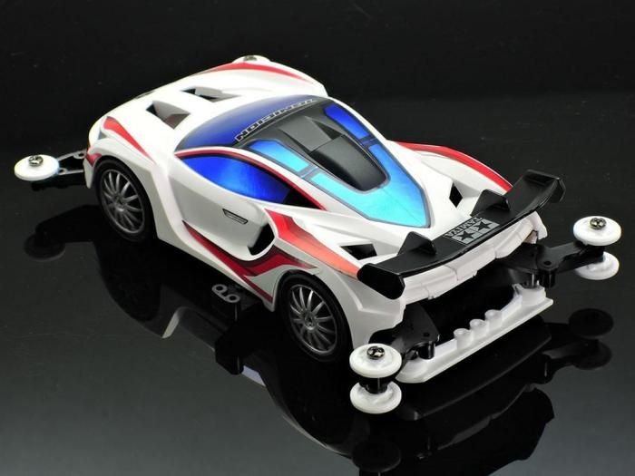 【 駆動効率を追求したMAシャーシ 】 “MA”とは、Midship AERO(ミドシップエアロ)の略。ダブルシャフトモーターを車体中央に搭載した、ミドシップレイアウトの「MSシャーシ」と、走行中の気流(エアロ)を特に意識してデザインされた「ARシャーシ」。それぞれの優れた特徴を1台のシャーシにまとめあげたのが「MAシャーシ」です。もちろん、これまでに蓄積されたレーシングノウハウをいかして、3.5:1のギヤ比、6個の低摩擦樹脂ローラー、リヤスキッドバーを標準装備するなど、走行性能も徹底的に磨き上げました。加えて、一体型のモノコック構造の採用で組み立てやすさやメンテナンス性もアップ。初心者からベテランレーサーまで、また、小さめのコースで行われる街かどレースから大型の特設5レーンサーキットの公認競技会まで、幅広く対応できるシャーシです。