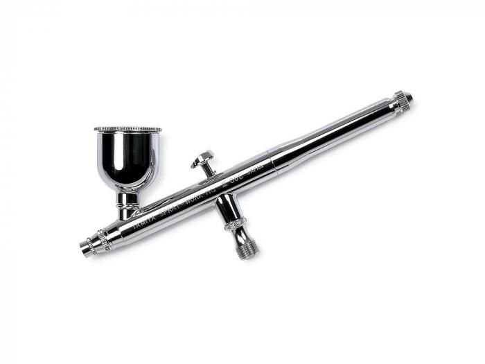 【 細吹きから広い面積までこなすオールラウンドエアーブラシ 】 タミヤスプレーワークシリーズの各コンプレッサーやエアー缶と接続できる、ダブルアクションタイプの高性能エアーブラシです。幅1mm以下の細吹きまでこなす本格派、HGエアーブラシの使いやすさをいっそう追求しました。作業時のポイントとなるメインレバーは操作がしやすいR形状とし、滑り止め加工を施しました。ボカシ塗装やグラデーションなどの微妙な塗装をはじめ、全面塗装やグロス塗装も美しく仕上げられます。タミヤのアクリル塗料やエナメル塗料、またラッカー系塗料など薄めることのできるほとんどの塗料が使えます。ノズル口径は0.3mm。