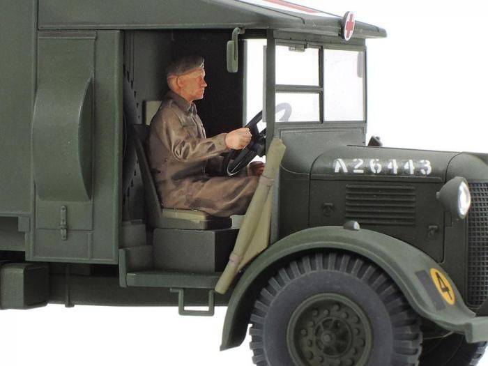 【 数々の戦場を駆けた救護活動のスペシャリスト 】 1940年から第二次大戦終結までにイギリス軍が13,000輌余りを生産し、救護活動に力を発揮したのが2トン 4×2 野戦救急車です。車体は民間用の小型トラックをベースとして、陸軍医療隊が後部コンパートメントを独自に開発。2段ベッドに変形可能なベンチシートなど、医療用の設備を数多く取り入れていました。任務に従事した戦域はフランスや北アフリカ、イタリア、ノルマンディ以降のヨーロッパと幅広く、陸軍での運用はもちろん、各地の空軍基地などでもその姿が見られました。