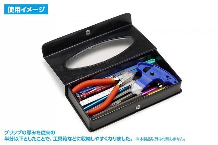 新設計のグリップは、握りやすさ、こじ開けやすさはそのままに、厚みを従来の半分以下としたことで、工具箱や引き出しなどに収納しやすくなりました。