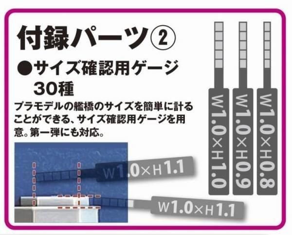 ● プラモデルの艦橋のサイズを簡単に計ることができる、サイズ確認用ゲージ30種を用意しました。第一弾にも対応します。サイズが合わない場合は、高さが合うようにプラモデル側を調整してください。
