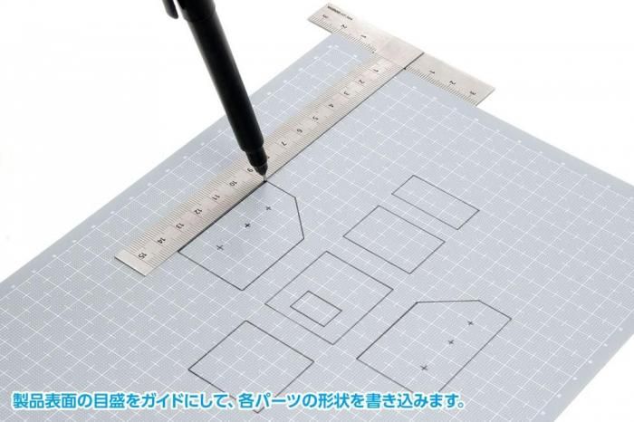 目盛が印刷されたプラスチック板! パーツの切り出しや加工の際のガイドに便利に使えます。