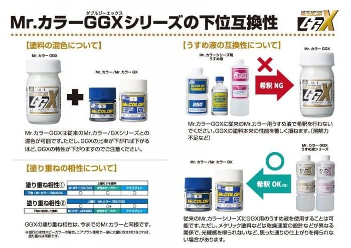 ※従来のMr.カラーうすめ液では溶解力が足りず、GGX本来の性能を発揮できず、綺麗な仕上がりとなりません。