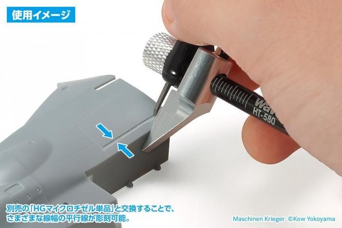 別売の「HGマイクロチゼル単品」と交換することで、さまざまな線幅の平行線が彫刻可能。
