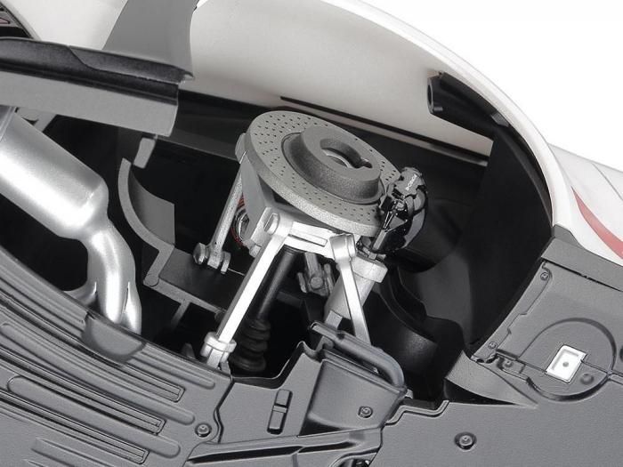 ★前後のディフューザー形状やサスペンションなどシャーシ裏面の見ごたえもたっぷり。