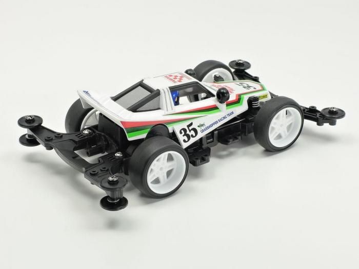 そのシンプルなフォルムと軽快な走りをRCの雰囲気そのままにミニ四駆化したのがグラスホッパーJr.です。