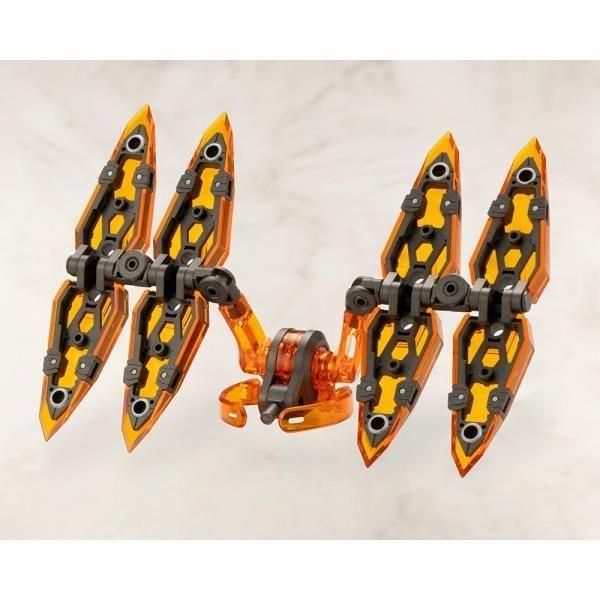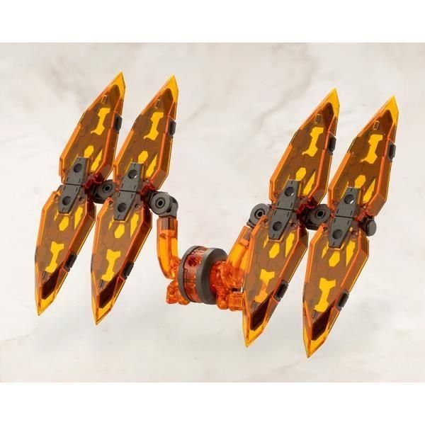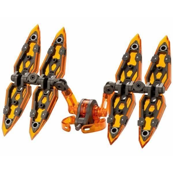 シャープなシルエットが美しい「翼形態」や、ボディを覆う盾としての「防御形態」等、ギミックを使い分ける事により様々なパターンが楽しめ、お手持ちのキットを強く美しくカスタマイズする事が出来ます。