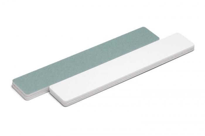 グリーンの面の研磨シート(#2000相当)で表面の細かなキズを取り、その後ホワイトの面で磨くとなめらかでつやのある表面処理が行えます。(作業の前には、弊社製品「ヤスリスティック」や市販の紙やすりなどで一般的な研磨作業をすませておいてください。#1000〜#1200ぐらいの目の細かいもので下地みがき作業をされることをおすすめします。)