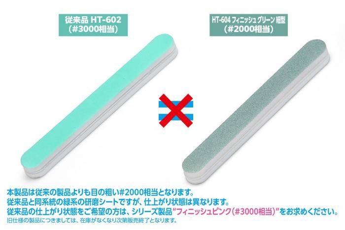 従来のHT-602 ヤスリスティック フィニッシュ 細型は本体色をピンクに変更しHT-606 ヤスリスティック フィニッシュ ピンク 細型(#3000相当)にリニューアルいたしました。