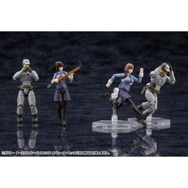 ■椅子に座った姿勢の腰パーツが付属し、ヘキサギアやブロックベース01 DXヘッドクォーターに付属のデスク、チェアーに自然に座らせる事が可能です。