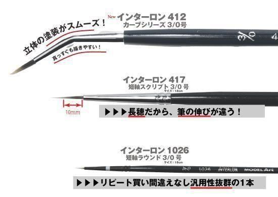インターロンの新商品「カーブシリーズ」発売に伴い、モデルアートが厳選した3種類の細部塗装用の筆をセットで販売!油彩、水彩、アクリルなど、どんな絵具にも使用可能。