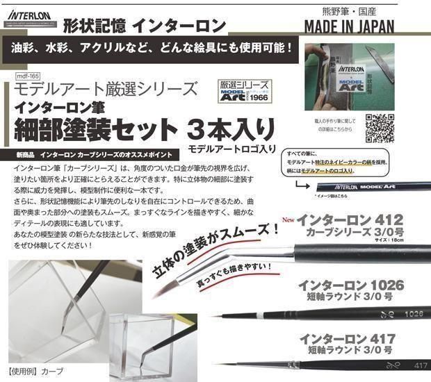 【モデルアート】mdf-165 モデルアート厳選 インターロン筆 細部塗装セット3本入り(モデルアートロゴVer.)