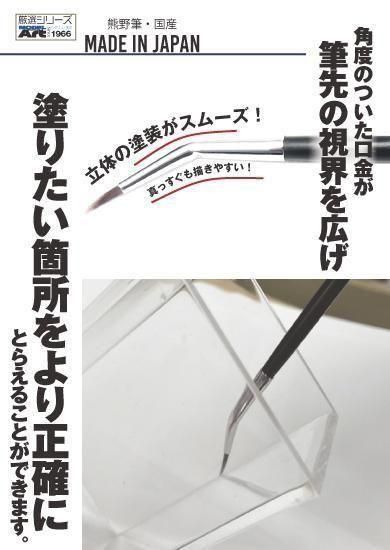 角度のついた口金が筆先の視界を広げ、塗りたい箇所をより正確にとらえることができます。特に立体物の細部を塗装する際に力を発揮!模型塗装に便利な1本です。