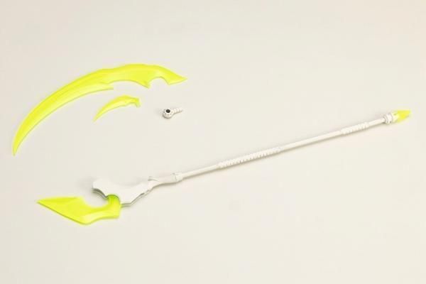 刃部分はクリアー成型となっており、刃部分の交換で基本形態の「カース・リーパー(大鎌形態)」のほかに「マジックスタッフ(杖形態)」として遊ぶことが可能です。