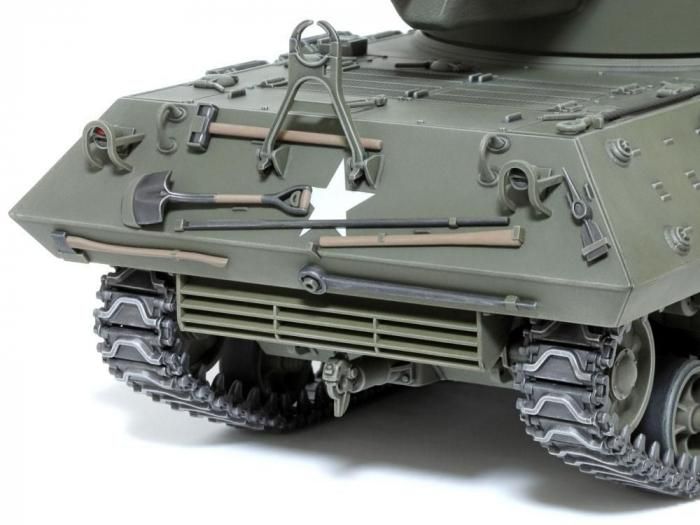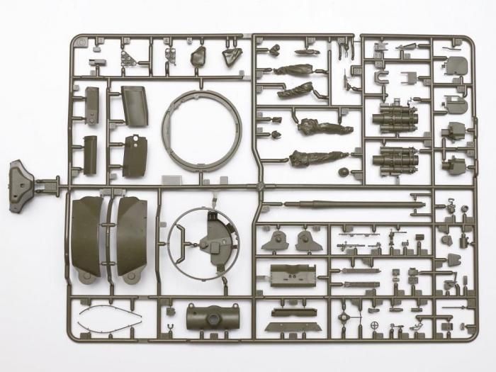 ★1/35スケールのプラスチックモデル組み立てキットです。★全長216mm、全幅88mm。★実車取材に基づき、オープントップの旋回式砲塔を備える姿をリアルにモデル化。★砲塔内部は90mm砲の装填部や照準器、砲弾ラック、乗員のシートや床で構成されるバスケット部分など立体感あふれる仕上がり。★砲塔後部に張り出したカウンターウェイト部分にはスライド金型を使用し、微妙な曲線で構成された形状の再現と組み立てやすさを両立。★車体内部の左右スポンソン上の砲弾ラックやバルクヘッドなども見どころ。★履帯は直線部分の一体化を進めた部分連結式を採用。★グリースガンを肩に担ぐ戦車兵の全身像1体をセットしました。★塗装例・マーキングは2種類を用意。