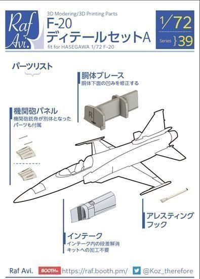 ハセガワ1/72 F-20を作るうえで、気になるポイントとなっている、機関砲・インテーク・アレスティングフックをセットにしました。