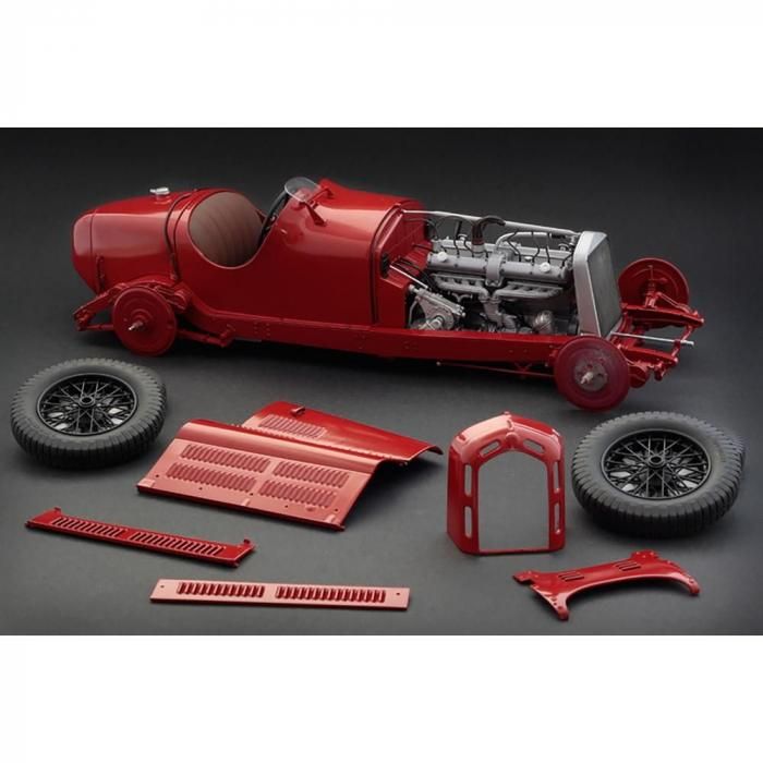 モデルは1/12スケールでこの歴史に残る名車、アルファロメオ8C2300を完全新金型で再現したプラスチックモデル組み立てキットです。エンジンからシャシーフレーム、サスペンションやドライバーズシートなど、ビッグスケールならではのフルディテールで詳細に再現。