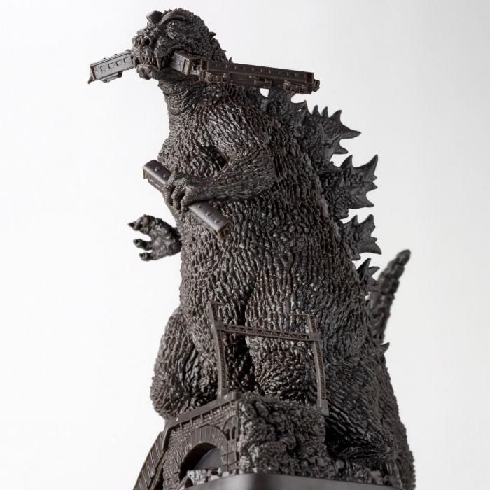 1954年公開の『ゴジラ』の宣材用スチール写真を立脚点としながら、70年に渡る様々なゴジラのエッセンスを再構築・再創造。スーツやCGの再現でなく、太古の巨大生物が東京に現れた姿を立体で描き出します。