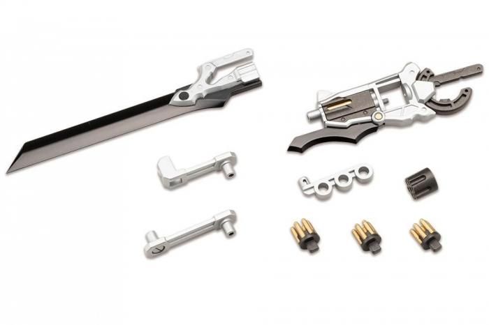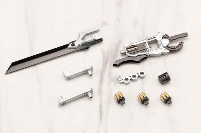 ■成型色はM.S.Gでは豪華な3色成型。刀身のブラック・銃本体のシルバーとガンメタルとなり組み立てるだけで見栄えの良い仕上がりとなります。