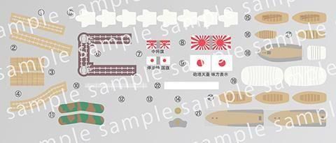 シールにはサービス収録として、ミッドウェイ海戦時の砲塔上対空識別日の丸、中将旗なども含みます(切り込みはありません)